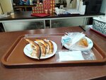 Являемся постоянными клиентами. В последнее время очень не довольны обслуживанием. Могут одну и ту же продукцию вместо одного раза посчитать несколько раз в чек. При заказе с доставкой или едой на вынос не докладывают порции либо кетчуп в пиццу. 21 мая. Заказывали обед на вынос. Посчитали 2 слойки 2 раза. Тоесть вместо 100 рублей взяли 200. Безобразие. И посмотрите на эти слойки. Видите разницу?