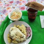 Персонал очень приветливый, приятные люди, атмосфера домашняя, всё очень очисто и аккуратно, вкусно по-домашнему, выбор не очень большой, по 2-3 вида первого, второго и салата, но всегда можно выбрать что-то по-вкусу.