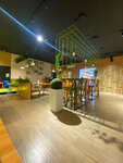 М-да, ни какое это не кафе. Это типа заводская столовая а-ля СССР. С маленькой поправкой на дешевизну интерьера, купленную через дорогу в супермаркете хозтоваров, и "взрослые цены"! О еде. Как будто попал в советский союз. Порции как в детском садике. На раздаче стоят сильно уставшие работницы (да они просто с ног валятся на ходу. Очень жалко их). Взял суп венгерский, гречку с грибами, и "Деревенскую" котлету. Суп скажем так себе - "ни два, ни полтора". Съесть можно. Гречка - она и в Африке гречка. Но вот "деревенская" котлета 100% попадание в советское прошлое. Вкус, цвет, размер абсолютно идентичен советскому времени. Конечно ни чего общего с "деревенским" там и близко нет. В общем и целом это звидение полностью соответствует заводской столовке. Что еда, что интерьер, что обслуживающий персонал и даже посуда с приборами все самое дешёвое. Больше я сюда ни ногой. Лучше в гепермаркете напротив поем. Вкуснее, огромный выбор блюд на любой вкус и кошелёк. А эта забегаловка для тех, кто работает в этом здании.