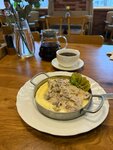 Прекрасное кафе, которое приятно удивляет уже с первых минут. Продуманный, стильный интерьер с несколькими уютными залами создаёт очень тёплую атмосферу. Персонал приветливый, внимательный и вежливый — обслуживание на высоком уровне, ощущается забота о гостях и внимание к деталям. Отдельно хочется отметить важный плюс — кафе dog friendly. Нас пустили даже с крупными собаками, и каждой принесли отдельную миску с водой. Это невероятно приятно и редкость для многих заведений. Также порадовала просторная и хорошо оборудованная детская зона, где дети могут спокойно и безопасно играть, пока родители отдыхают. Замечательное место для семейных визитов, встреч с друзьями или просто уютного вечера. Определённо рекомендую!