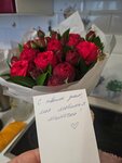 Получила подарок от дочки на день матери. Ооочень красивый букет! Из 11 шт целых 33!!! В каждой розе по три бутона! Розы пионовидные, как бутоны пиона, не знаю где ещё такие бывают. Плюсом розочка-комплимент от магазина))) Открытка, подписаная вручную... Очень приятно. Спасибо всем!