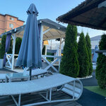 Красивая уютная территория хоть и небольшая, разделенная на взрослую и детскую зону. Детская зона намного больше по размеру, чем взрослая. Но.... бешеные дети кругом, их никого нет в детской зоне, зато все они толкаются, пихаются, прыгают, орут, визжат во взрослой зоне в бассейне. Поэтому отдохнуть здесь комфортно будет трудно! Полотенца здесь платные 100 рублей , возьмите на заметку при посещении. Когда будете кушать, то делайте это не у бассейна.. Иначе напьетесь воды из него, которая будет в вашей еде и напитках Если бы не дети, то можно было бы поставить этому месту 4 с минусом, а так только 2. Больше не приеду! Дети должны быть отдельно, иначе получается только им комфортно....