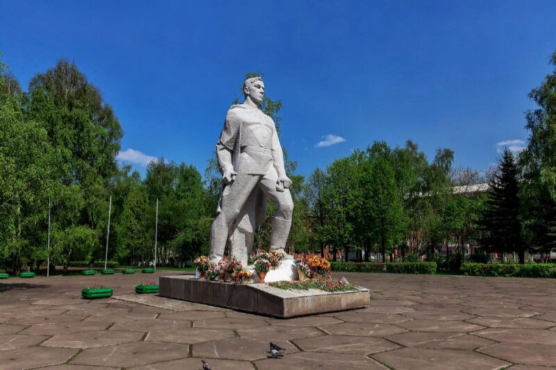 Данный памятник в народе называют Алёша каменный, он является по сути главным памятником Завадского района, находится на площади торжеств, здесь же и проходят все праздники и мероприятия, вокруг растут елочки и скамейки для отдыха.