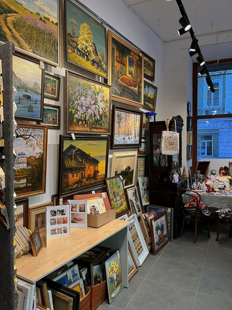 Уютный необычный художественный салон, большой ассортимент картин, шикарная отреставрированная мебель, доброжелательный продавец, рассказала и показала Вологодские сувениры,я осталось в полном восторге)
