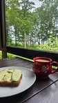 Жалеем, что были тут всего одну ночь, потрясающее место. Мы жили в охотничьем домике вдвоем, просто прекрасно. Что сильно удивило, так это московский напор воды в душе, нехарактерный для провинции. Хороший завтрак, воздух и фантастические виды на озеро. Из минусов, независящих от хозяев, это разбитая дорога до места с трассы М9.