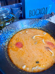 Паназиатский ресторан в стиле "Бегущий по лезвию" и "Пятый элемент" 🍤 Заведение называется Восход7 — и даже в названии его отсылки к чему-то советскому и космическому. Внутри большое пространство, много синего неона и граффити на стенах. Меню особенно понравится любителям острого и пикантного. Такими получились все блюда, которые мы заказали: от закусок до основных 🍽 Фаворитом стала паровая булочка бао с хрустящим цыплёнком. Следом за ней идут тигровые креветки бэнг-бэнг в панировке и с пикантным соусом. Тройку лидеров замыкает вок с креветками. А вот с том ям осторожнее: по начинке всё было грустно, если сравнивать с аналогичным супом в других местах. Пара креветок, немного тонко нарезанных грибов и рис 🍲