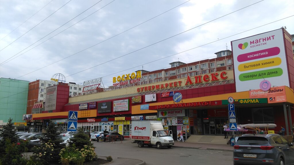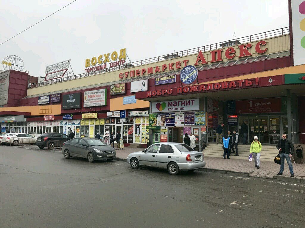 ТЦ « Восход»-один из моих любимых на Западном!Конечно.прежде всего универсам Апекс!Здесь можно купить всё!!!Всегда всё свежее!Сотрудники вежливые через одного,но я уверена,что руководство над этим работает! Далее!Аптека,небольшие магазинчики,в которых всегда можно что-то купить.даже подарок кому-то или себе любимой! Цокольный этаж!Это вообще чудо!Магазины одежды,особенно небольшой,где работают Светлана и её муж Валерий!Не побоюсь сказать,что всегда эксклюзивный товар!Можно одеться с ног до головы!Очень вежливые и внимательные к любому покупателю продавцы! Магазин для женских увлечений с кружевами,пряжей,пуговичками и всякими другими штучками-это настоящий Клондайк!!!Без покупки оттуда не выйдешь! Оптика!!!Отлельная приятная история!И зрение проверят,и очки подберут!И всё очень вежливо и тактично! Ну и другие торговые точки тоже супер!В том числе на фасаде!