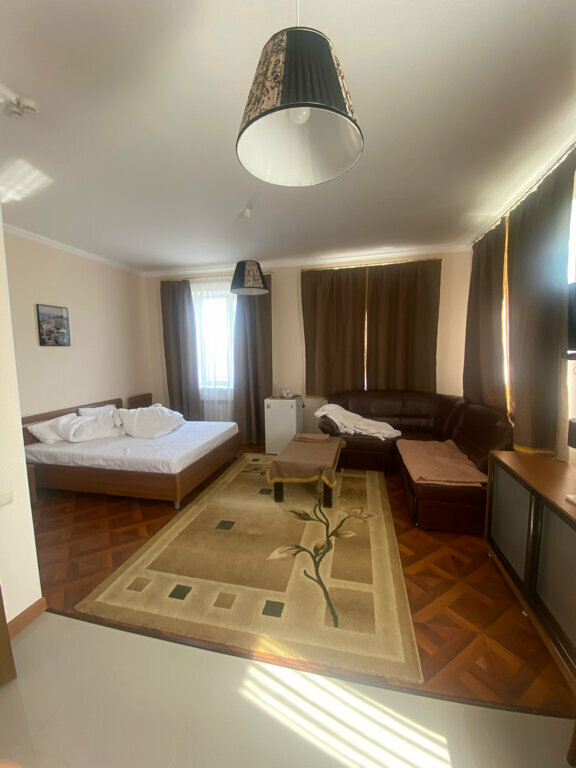 Просторный номер люкс, с большой кроватью. Постельное прекрасное, всё чисто, аккуратно. Хорошие подушки, одеяло, матрас - засыпаешь влёт! Персонал отзывчивый, добрый. Нам очень понравилось всё. Были с малышом двухмесячным, на диване соорудили ему спальное место. Он тоже очень доволен)