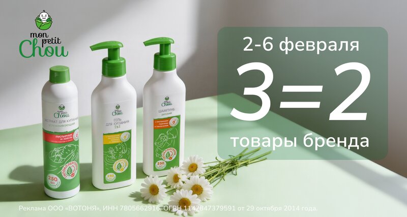 Для чувствительной кожи малышей — только самое нужное и по выгодной акции! C 2 по 6 февраля на товары бренда Mon Petit Chou в магазинах «ВО...