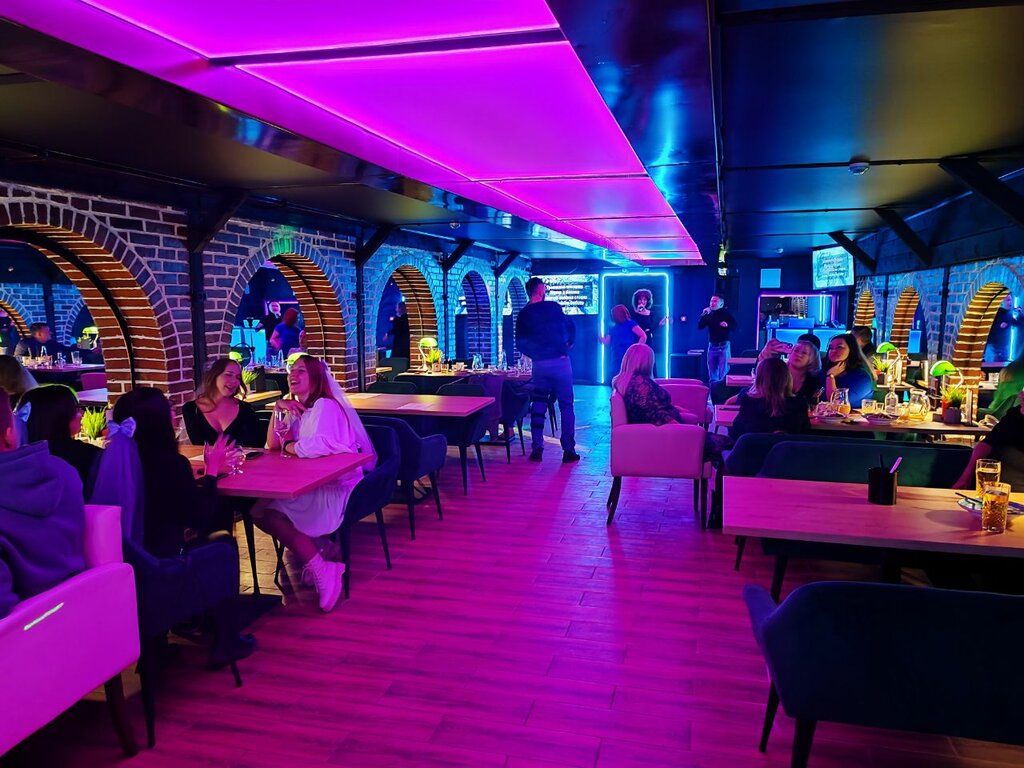 Еда:заказывали гренки, стрипсы, сырную тарелку. Последнее очень сомнительно - ощущение, что сыр очень долго лежал в холодильнике до подачи. Напитки:заказывали шампанское, негрони, пиво и другие напитки, неплохо - явных недостатков не обнаружили. Атмосфера приятная, персонал приветливый, есть охрана на входе; в уборных и в самом заведении достаточно чисто, опрятно. Недостаток: В рамках "крейзи меню" есть возможность заказать песни вне очереди за отдельную плату, хорошая идея, но именно этот момента ,можно сказать, испортил посещение. Мы пришла в караоке, а оказались на сольном концерте какой-то женщины, которая решила покупать каждую следующую песню. Понятно, что заведение так зарабатывает, но должна же быть какая то разумная граница этому, а как же другие посетители?...