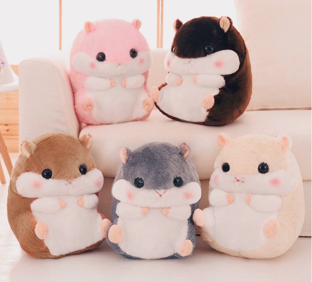 Размер хомяка: 40 × 30 × 30. Размер пледа: 170 × 100 см. Материал хомяка: плюш (искусственный мех). Плед хомяка: велсофт (синтетическая махровая ткань).