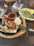 Заказали салат с баклажанами, шашлык из шейки свинины и курицы. Все очень вкусно, зелень в салате очень свежая. Баклажан запеченный приготовлен качественно и снята шкурка, что говорит о мастерстве повара. Спасибо, Тверь. Персонал очень внимательный