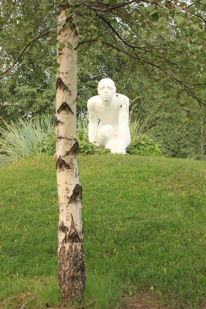 Скульптура, выполненная из старого мрамора, оплетена растениями. Со временем растения разрушат скульптуру. Ничто не вечно.