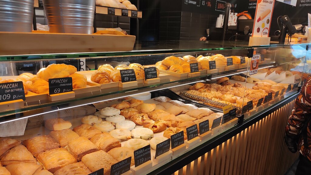 Часто ходим с сыном в эту булочную. Радует наличие небольшой детской игровой зоны, а также акции. Вкусный латте, свежая выпечка, большой выбор еды. Можно плотно позавтракать или пообедать. По цене комфортно, особенно если попадаешь на акцию (кофе за 1 рубль, любимый продукт). Приятный персонал, особенно Кристина и Дарья. Также работают и другие девочки, в основном молодёжь. Часто бывают очереди, но и свободные места в зале присутствуют.