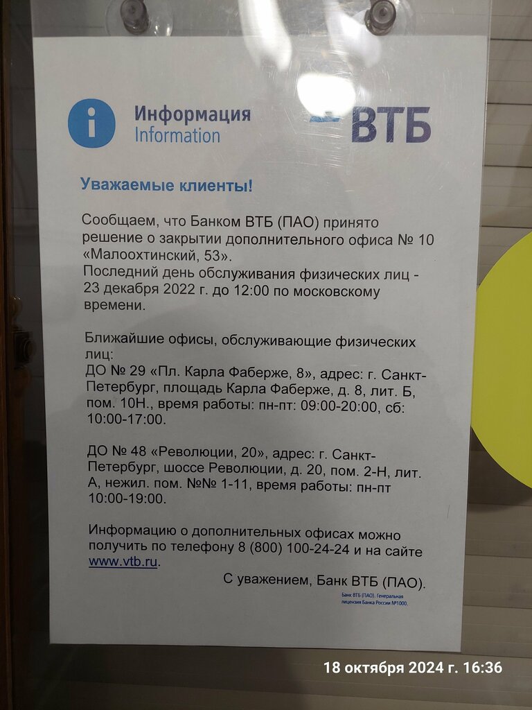 Закрылся офис на Шоссе Революции, указан ближайший адрес Малоохтинский, 53,окащалось,что там обслуживаются только юридические лица, как можно сразу не указать этой информации!!!