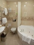 Хорошее место, отличная гостиница! Сервис отличный, чисто, персонал вежливый. Снимали номер полулюкс. Много полотенец, наборы для гигиены и ухода, удобная большая кровать. Электросушилка для мелких вещей. Вид из окна на красивый парк. В гостинице тихо, удобное расположение. Здесь вам действительно рады, искреннее, доброжелательное отношение. Завтрак разнообразный, вкусный. Можно даже "игристого" налить. На 8 этаже бар, там вкусно и недорого. Мне очень понравились два романтических дня в гостинице. Живу в Кирове, приятно удивлена, что здесь такой прекрасный сервис. Спасибо за вашу работу и заботу! Кстати, чистота на отлично. Это факт. Спасибо за комплимент в виде вкусных конфет 😊👋.