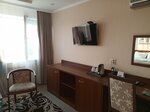В номере гостиницы: двуспальная кровать, телефон, телевизор, холодильник, чайник, фен, кондиционер, набор для приготовления чая и кофе, комплект полотенец, туалетные принадлежности, халат, тапочки, wi-fi.
