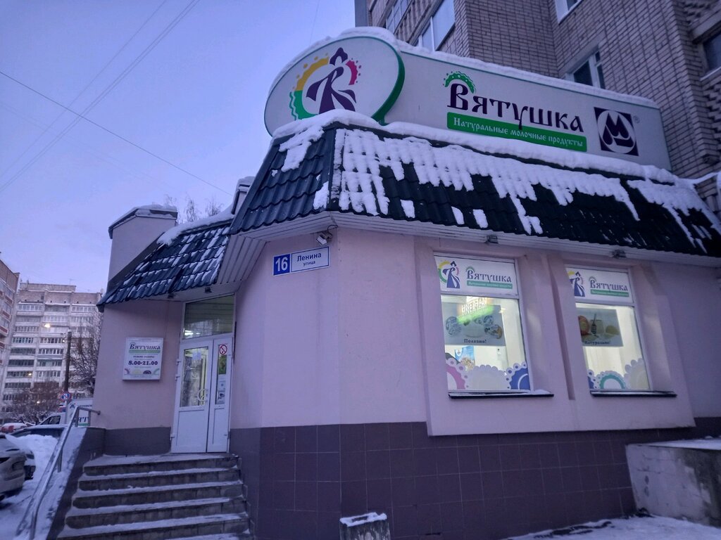 Хороший магазин. Приветливый персонал. Самый большой выбор сыра Вятушка именно с точки зрения весовки, есть и маленькие куски, и побольше и с шариках (берём чаще в шариках). Всегда полный ассортимент молочки. А ещё большой отдел с здоровым питанием. Недавно появился шкафчик, где можно купить сувениры с логотипом Вятушки. Рекомендую.