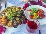 Вид из ресторана шикарный! Блюда вкусные (заказывали морепродукты на гриле, живые устрицы и овощи гриль). С нами работали официант Никита, приятный молодой человек, посоветовал хорошее вино к нашим блюдам. Отмечали с мужем годовщину свадьбы, приехали из другого города. Стол нам украсили лепестками роз, а по окачании ужина подарили комплимент от ресторана в виде десерта. Было неожиданно и приятно)) Спасибо! Рекомендую к посещению. Приедем к вам еще раз обязательно!