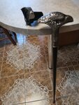 Опорная трость с клинком. Красивая фигура хищной птицы не мешает хвату.  Причина уценки: царапины на шафте трости, которые не влияют на опорные функции.