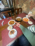 Обслуживание быстрое, персонал вежливый, порции большие, аутентично. Хотя желудочки на сковороде принесли жесткие.
