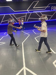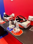 На день рождения сына устраивали игру. Бронировали зал заранее, вносили предоплату. В назначенное время приехали командой из 5 детей 11-12 лет, мне пришлось играть для поддержания баланса, т.к играли 3 на 3. Максимально я так понял можно командами 5 на 5, если судить по количеству шлемов. Да и если больше 10 человек то будет тесно, все будут толкаться. Тренер провел краткий инструктаж, подогнали всем шлемы и началась игра. Игра по типу Counter Strike, возможно есть и другие, но мальчиков другие игры и не интересуют. Шлемы в хорошем состоянии, вроде Oculus rift, хотя не уверен, не специалист. Изображение достаточно яеткое, пиксели в глаза не бросаются. Физическая арена площадью примерно с половину школьного спортзала, препятствий никаких нет, столкнуться можно только между собой. Позиционирование довольно четкое, столкновений за игру не было. Играли час, сыграли 3 игры по 15 минут, все на разных аренах, плюс инструктаж и перерывы. Лучше приносить сменку, и одеваться легче. В зале не холодно, а бегать и приседать придется много. В целом мне, как взрослому человеку понравилось больше чем пейнтбол и лазертаг. Никаких негативных последствий (типа головных болей и головокружений) за час не ощутили. Играть дольше уже было физически тяжело. Попробовать стоит однозначно, дети были просто в восторге!