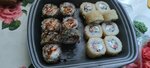 Заказала сэт номер 10, жареные и запеченные роллы. Привезли через 35 минут, горячие, вкусные, пока что лучшие в этом городе, которые я пробовала. С удовольствием покушала. Спасибо😘💕