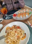 Сушист - Бог этого заведения!!🤤 Супер вкусно🤌🏻 Были в зале одни, очень голодные, но ждали около 20 минут. Оно того стоило, поэтому прощаем❤️ Атмосфера приятная, лучше приходить вечером. Заведение позиционируется как ночное, душевное и без винной карты.