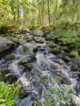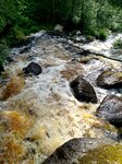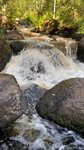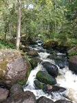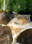 Мы знали, что где-то в лесу есть ВОДОПАД! Очень захотелось его увидеть. Мы приехали в пос.Заречье, переехали небольшой мостик и тут недалеко от мостика видны 2-а дома (похоже заброшенные). Сразу увидели на столбе информационный щит, где указано, что здесь находится. Тут оставили машину, потому что дальше не проехать - дороги нет. Есть только лесная тропинка, по которой мы шли примерно 150 метров. Услышали шум падающей воды, а потом увидели и сам ВОДОПАД! В лесу с гористого склона среди большущих камней несётся бурлящий поток воды с громким шумом и разлетающимися в разные стороны брызгами... Аж, дух захватывает, как быстро несётся вода и с какой силой ударяется о камни... И несётся, несётся она далеко куда-то вниз, скрываясь в лесных дебрях... Невероятно красиво!