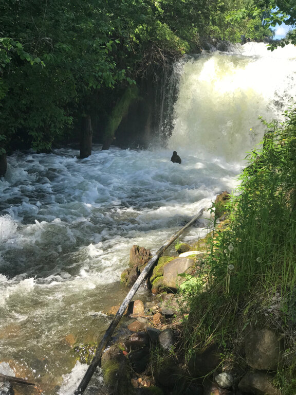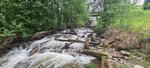 Небольшой водопадик (падун), впадающий в Кончезеро. По пути можно остановиться и прогуляться на минут 10. Фотографии получаются атмосферные, плюс брёвна старые (видно, что с историей). Рядом бывший кончезерский чугунуплавильный завод.