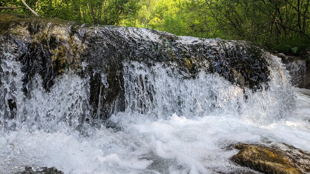Очень красивый водопад. Не высокий. Прозрачная но прохладная вода