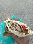 Заезжал ночью, поэтому на фирменную шаурму с говядиной не попал. Брали свиной шашлык в лаваше, он был прекрасен. Ещё брали классику-куриную шаурму: овощи вопросов нет, соус тоже. Но вот курица была явно не только с гриля, но опять же понятно почему (ночь же).