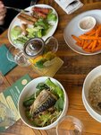 Давно хотела сюда придти попробовать блюда. Даже не ожидала такой большой порции салата с рыбой, все было очень вкусно👍 Супчик просто огромное многообразие вкусов. Водичка с лимоном как комплимент перед едой очень приятно и вкусно.