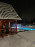 Хорошая сауна. На втором этаже, караоке, платное, детская комната, диваны. На улице тёплый не большой бассейн, с подсветкой, детская площадка. На территории красиво, но цена... зашкаливает одним словом, ни всем по карману))) Три звёзды только за ценник!