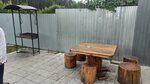 Плитка на улице вся болтается, крошится. Беседка крытая не очень в хорошем состоянии. Холодильник грязный, разломаный. У столов все края в зацепках, в приличной одежде страшно сидеть, всё в зацепках будет. И вообще вот абсолютно всё в еле живом состоянии. Вы если решаете такие места держать, ну хоть немного следите за состоянием. Единственный плюс расположена в неплохом месте и обработана от комаров