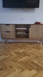 Ох Поехали. 1 фото ожидание цвета 2 реальность. По словам Дмитрия я должна была лично контролировать цвет, почему я? Не ясно. И главное как я, которая никогда не работала с деревом должна с фото подобрать цвет точнее, не понятно. Для него это одинаковые цвета, переделка платная. Дальше ещё веселее. Она вся кривая, держится на трёх болтах, доводчики не работают, верхняя планка с 5 точками опоры провисла( как?!! Неведомо, "мастера") Пришли доделывать ПЕРВЫЙ раз, человек потратил три часа, покрутил, повертел, исцарапал дубовый паркет и сказал "она кривая, я не знаю почему", забрали. ВТОРОЙ РАЗ, привезли, болтов новых прикрутили, верхушку выпрямили, но она все ещё кривая, болты не утоплены🤷🏼‍♀️ В ТРЕТИЙ РАЗ, Дмитрий почтил нас своим личным присутствием, болты утопил. Последние фото сегодняшние, будет 4 переделка. Внимание вопрос сколько раз нужно, чтобы переделать одну тумбу?