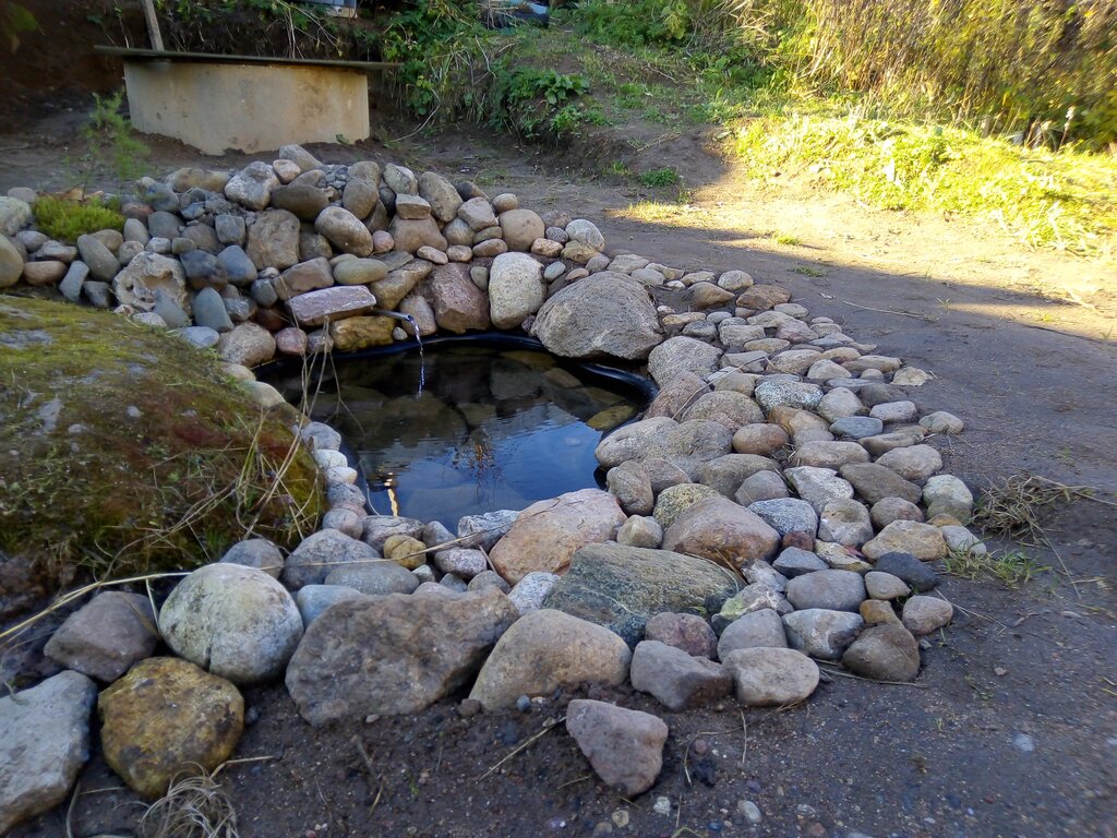 Небольшой родник с чистой водой во дворе гостиницы Дом у родника. Вода вкусная, без накипи, вытекает из подножия Зимогорской горы.