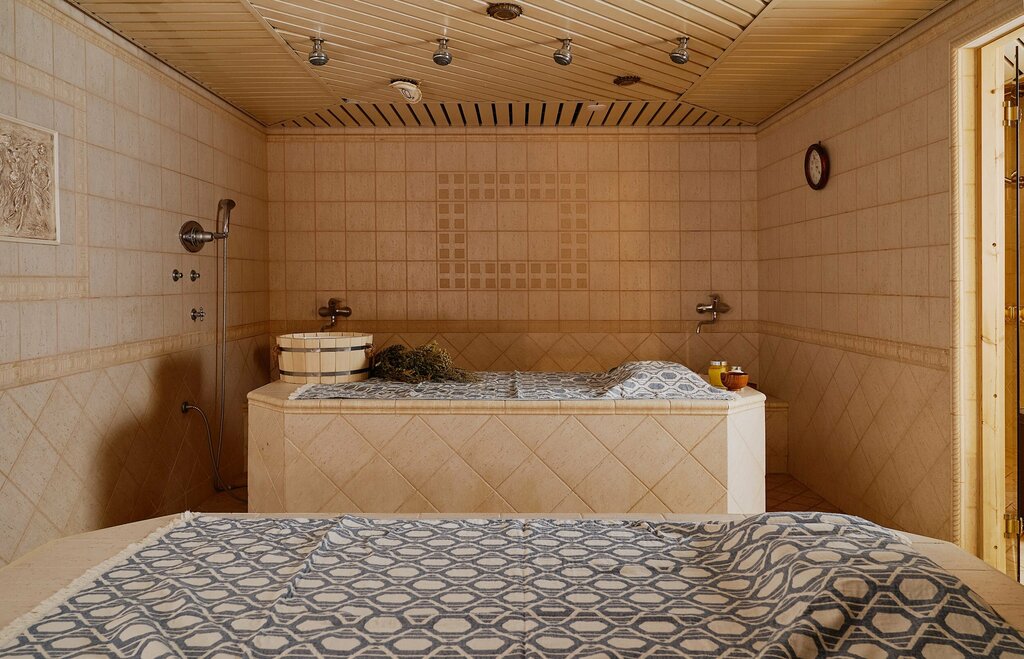 Русская, турецкая парные, бассейн-джакузи с противотоком и гидромассажем, ледяная купель, банкетная зона и зона отдыха с шезлонгами. Дополнительно услуги парильщиков, массаж. Аренда почасовая, спа зона закрытого типа без общего доступа.