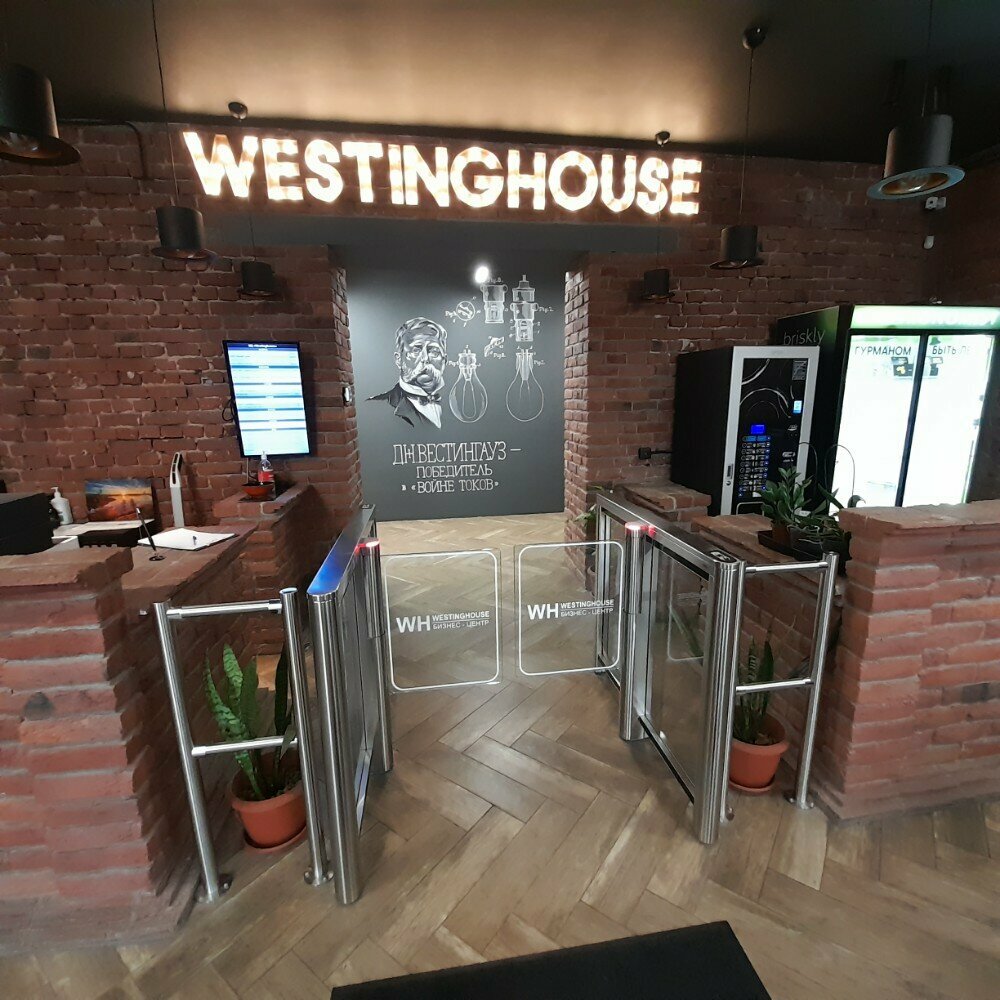 Приятный и уютный офис в европейском стиле - аутентичные кирпичные интерьеры внутри, изумительно насыщенное стилями лобби, понятный и добротный ресепшн и возможность закупить снежинки в местном едомате