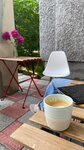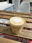 A cute little coffee spot... I love such places. Inside, a cute girl is making coffee There is a table on the street to drink this coffee, watching people passing by.. Unfortunately, flat white wasn't perfect. It was very milky, the feeling that the drink did not get a double shot of espresso. However, the place is good, I liked it))