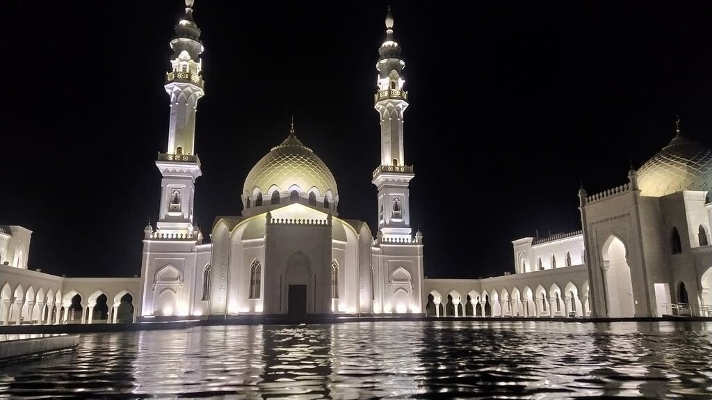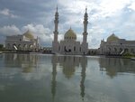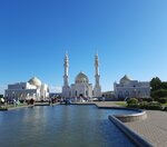 Белая мечеть расположена в городе Болгар, в 3 часах езды от Казани. Открыта в 2012 году. Архитектор Сергей Шакуров. Высота минаретов около 47 м., диаметр купола 10 м., высота - 17 м. Это комплекс зданий, включает кроме самой мечети, школу и резиденцию муфтия. Построена из белого итальянского мрамора. Перед ней располагается фонтан, разбит небольшой сквер. Внутри небольшой зал для молитв. На специальной витрине хранится реликвия-волос пророка Мухаммеда. Стены украшены цитатами из Корана, красочными орнаментами. При первом взгляде на мечеть сразу возникает картинка с Тадж-Махалом, такая вот связь времён и религий. Не знаю, это задумка автора или нет, но ассоциация возникает.