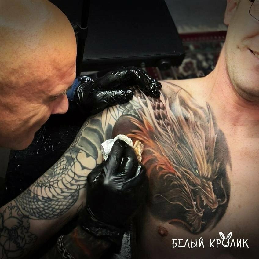 Отлично место,дружеская обстановка,профессиональные мастера. Бил уже не первое тату себе,выбор пал на студию Белый Кролик,выбрал рисунок,обсудил с мастером и приступили к работе.За три сеанса закончили работу. Огромное спасибо Вадиму за отличную работу.Всем рекомендую и буду обращаться ещё.