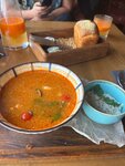 Этот суп отличается насыщенным и в то же время деликатным вкусом. Он сочетает в себе сладость морепродуктов и остроту специй. В блюде ощущаются лёгкие цитрусовые ноты