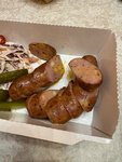 Были на днях здесь, брали ребра, они просто ужасные, мясо пресное и невкусное, нормально не отдирается от костей. Хотели попробовать сосиски, нам посоветовали с сыром, со словами «очень вкусные, вам понравится», только вот ни слова про то, что внутри перец и они острые! Нам по состоянию здоровья нельзя кушать острое, почему нельзя сказать, что в них есть перец? Цены конские, абсолютно не сопоставимы с качеством