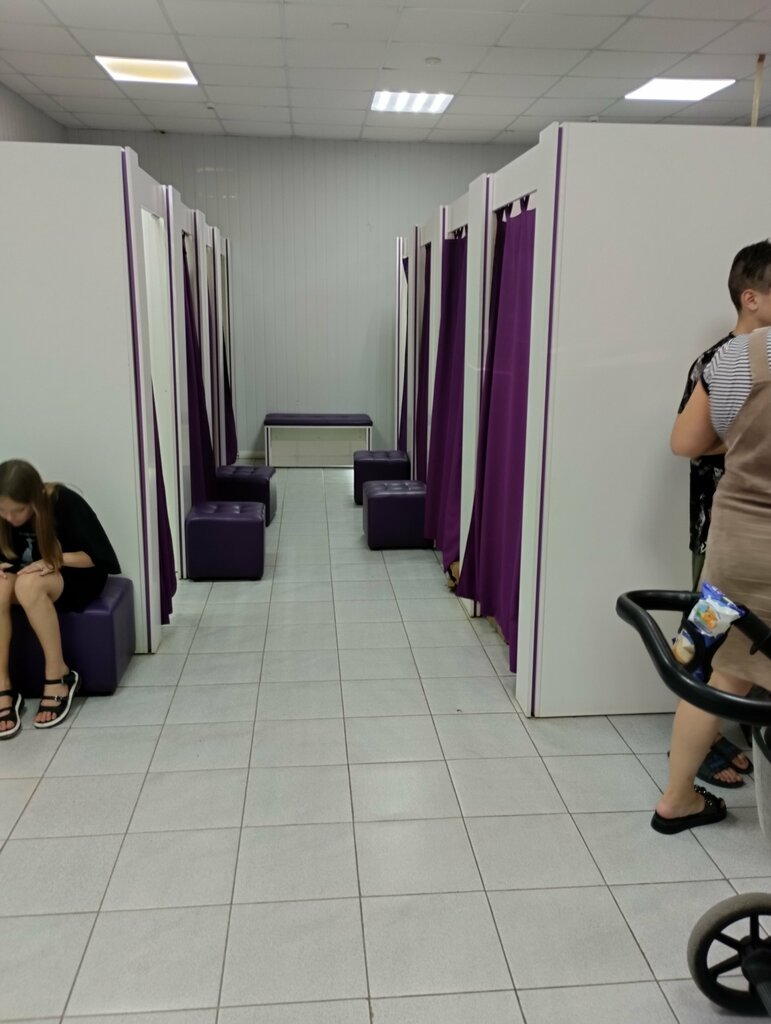 Из плюсов: много удобных раздевалок, удобное местоположение Из минусов: работники подолгу отпускают клиентов, в это же время собирают коробки на отправку, а очередь из 6-7 человек стоит в ожидании....