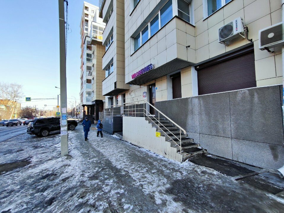 Ужасный вход, всё во льду, сотрудники ничего не предпринимают, посмотрите на крыльцо напротив, уважаемые - там чистота и порядок, а у вас лестница вся разбита, торчат загнутые металлические уголки, разбитая плитка, мусор, двери входные не мылись наверное, с момента установки, ещё и угрозы от сотрудника, чтобы не смела жаловаться, под предлогом , что я якобы получила неоплаченный товар, выбежал за мной на улицу, выхватил мой телефон и начал что-то там искать, очевидно сам и оставил от моего имени положительный отзыв, тк я после этого не смогла уже в приложении WB сделать отзыв на этого сотрудника