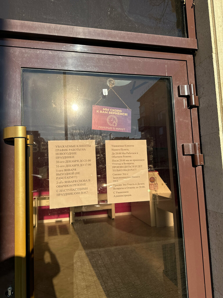 Долгое время получал товар в этом пункте со дня открытия. И мне всегда нравилось обслуживание. Но в последнее время с приходом новой завед.ей все изменилось . 24.11.25 при получении товара таймера Т-15 при открытии коробки я показал сотруднику на брак , то есть дисплей не работает цифры не горят. Такие таимеры Т15 работают у меня. На что она мне ответила любезно, что она оплату сделает. А потом можно будет возврат . Вчера заведущ. зашла в мой каб.телеф. Сняла видео,фото товара увидела не горит дисплей написала причину возврата. А мне сказала, прийдет сообщение согласие продавца на возврат. Продавец отказал, но оплату за товар обманом получила от меня сотрудник. Сегодня 26.11.25 мне по хамски матами криками завед.отказалась вернуть оплату за бр.товар. Начала мне угражать. Выкрикивая что не она была 24.11.25 Все есть на видео. Товар оставил в пункте. Вслед она мне крикнула выбросит в мусор заберите. Не адекватная заведущая. Вызвала как бы полицию. Теперь буду обходить этот пункт. Хорошо ,что их много в городе.
