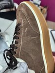 Заказала кеды. При осмотре даже не обратила внимание на отпечаток шнурка, который появился из-за тесной коробки, но покупать не стала по другим причинам. Не приняли в отказ от товара из-за этого "брака".