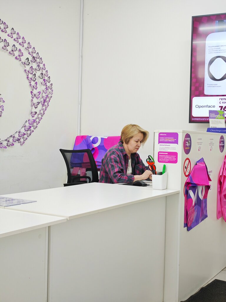 На этом пункте выдачи работает бабка, которая обманывает клиентов! Девушка смотрела под камерами одежду, и (не тихо!) сказала этой сотруднице что на одежде нет бирок (ДО примерки). Потом ушла в примерочную, хотела отдать на возврат, а эта бабка скосила за дуру, мол, не было такого и если захочет, перебанит всем аккаунты, если будут возникать вопросы 🥰