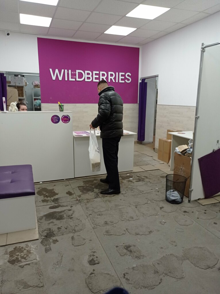 Хороший сотрудник, вежливый, помогает в получении. Пункт очень грязный, примерочные маленькие, неудобные, грязные зеркала. В примерочных лужи воды.